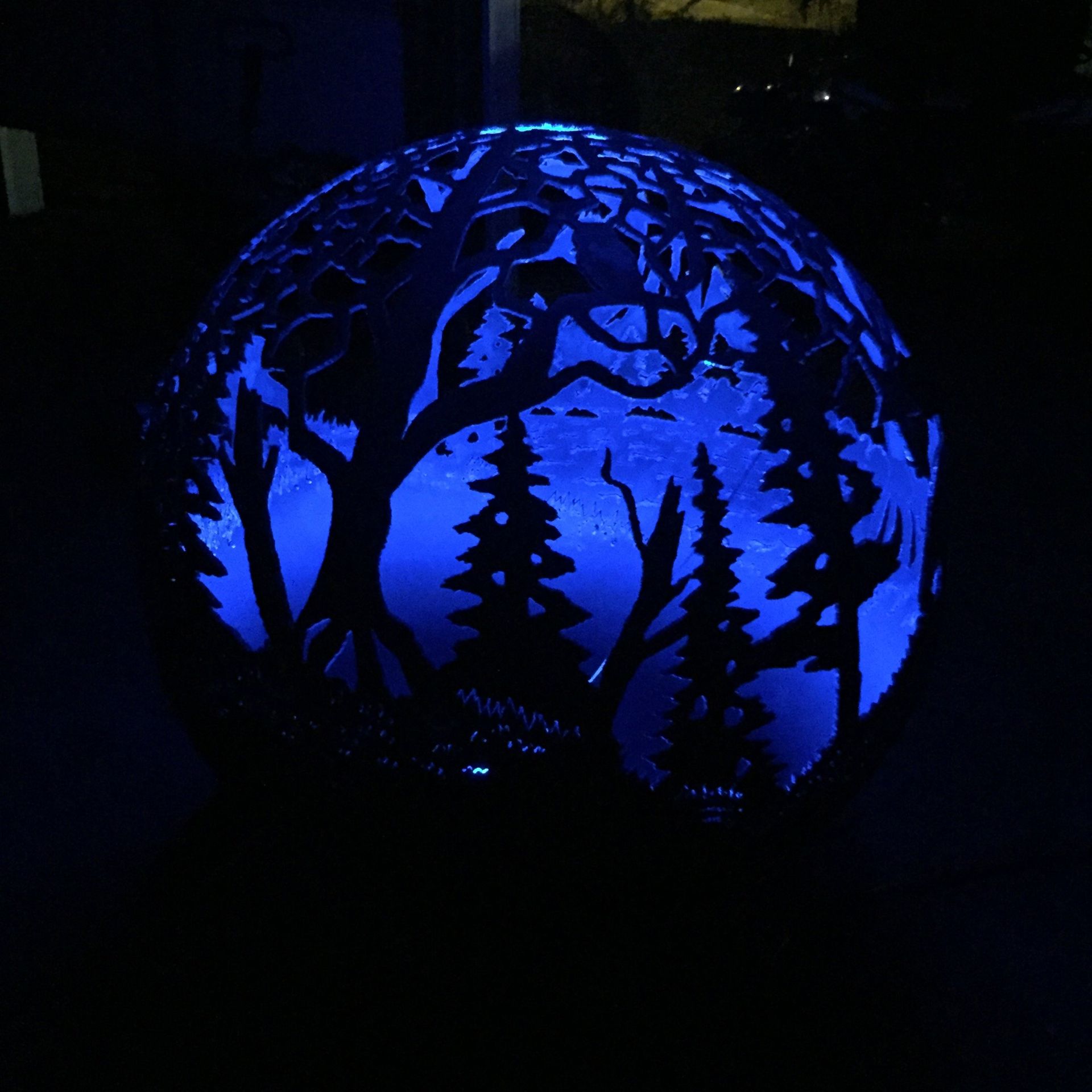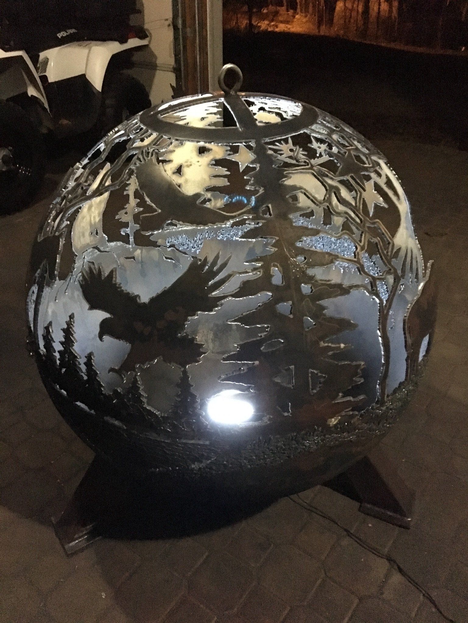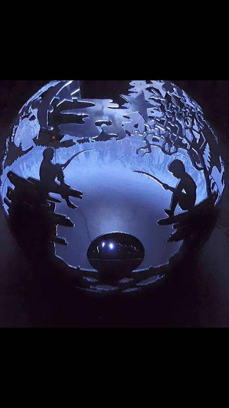 We feature award winning artists, Dave Knapp with the experience and talent to make your Orb exactly the way you want. Our orbs are very high quality and constructed of 1/4" thick steel giving durability for lifetimes of enjoyment. Each orb has a 37" diameter and is custom, so no two are alike. Our artist can create whatever design you request. These fire orbs are handmade orbs by Dave Knapp, locally in Northern Wisconsin. Iron Raven Orbs are designed to use either a fire or when not in use for a fire you can put a light in for aesthetics. These orbs also feature a rain drain in the bottom to ensure longevity. Thank you for your interest in our exciting new product and please don't hesitate to contact us with any questions on the contact page.